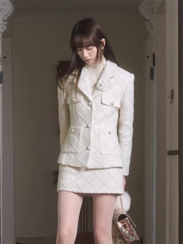 - Material: el conjunto de traje para mujer está hecho de poliéster, tela de alta calidad, ligero, de secado rápido, muy suave al tacto y al uso, muy agradable al tacto. Ribete de tweed, color sólido, totalmente forrado; la falda es hasta la rodilla, llevarla te hará más sexy y a la moda