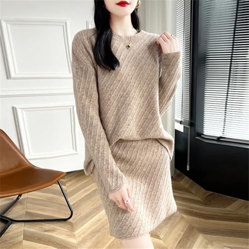 Suéter De Manga Larga para Mujer, Falda A La Cadera, Conjunto De Dos Piezas, Top Suelto, Falda Corta Lisa pnnrk M